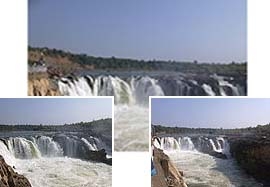 The Dhuandhar Falls in Bhedaghat is a well known sight where one witnesses beautiful scenery and complete tranquility. The beautiful falls is rough yet calm, soft yet loud and undoubtedly breathtaking.The waterfall is located 25 km from Jabalpur on the Narmada river. Dhuandhar Falls or the smoke cascade is a beautiful waterfall in Bhedaghat. The Narmada River after passing the Marble Rocks narrows to become a smoky waterfall. The plunge of Dhuandhar Falls is sudden and hence has a greater effect. This beautiful fall is a spectacular sight in Bhedaghat.