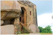 Built by the Gond ruler Maharaja Madansahi in c. 1116 CE atop a rocky hill, the bastion dominates the skyline. The building is supposed to have been a part of his pleasure resort cum watch tower. The building is a plain and simple structure without any ornamention. It stands now like a watch tower on the summit of a hill poised on two gigantic hills, the upper part of which on one side overhangs the base and commands a magnificent view over the rich valley around. Looking at the structure and location of the building, it appears that it indeed served as a watch tower. At a short distance, an Ashwa-Shala (stable) exists and a Hathi-Khana (elephant cell) existed where the LIC office stands today. Close by is a Baoli (step-well) for constant supply of fresh potable water to the bastion.